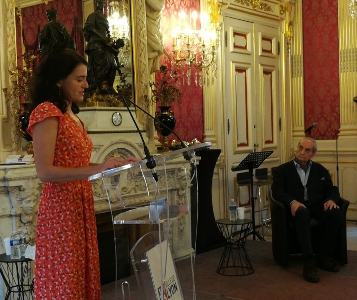 Nathalie Perrin-Gilbert adjointe à la culture , a remis la médaille de la ville de Lyon devant un public très ému .
