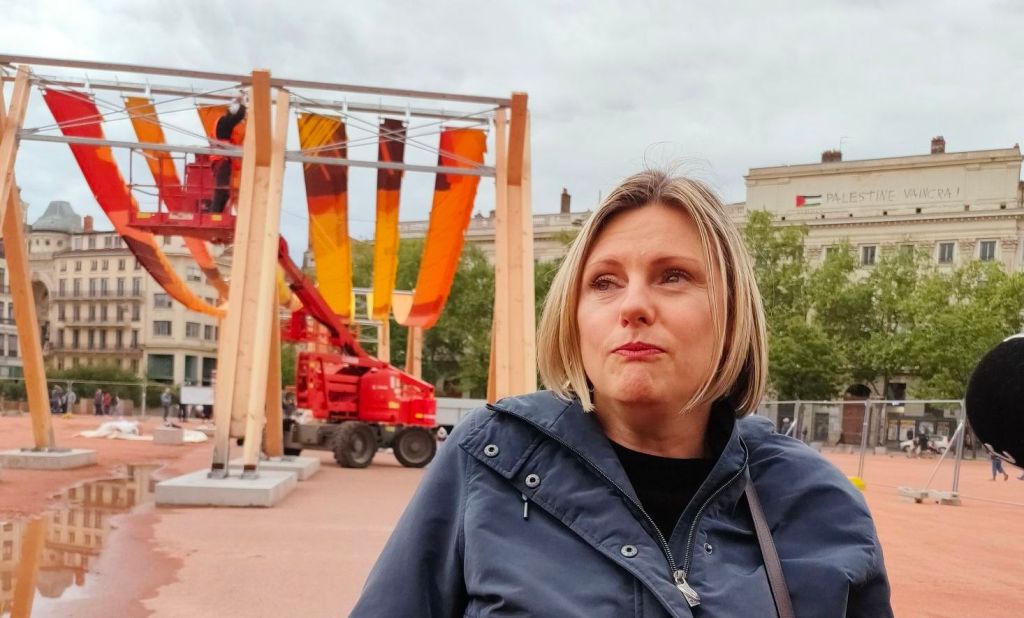 C’est un geste artistique monumental qui s’installe place Bellecour jusqu’en 2029. Il s’agit d’une oeuvre éphémère. Plusieurs grands portiques en bois soutenant des lés de tissu jaune, orange, rouge, ont fait leur apparition place Bellecour et excitent la curiosité des passants qui donnent leurs avis.