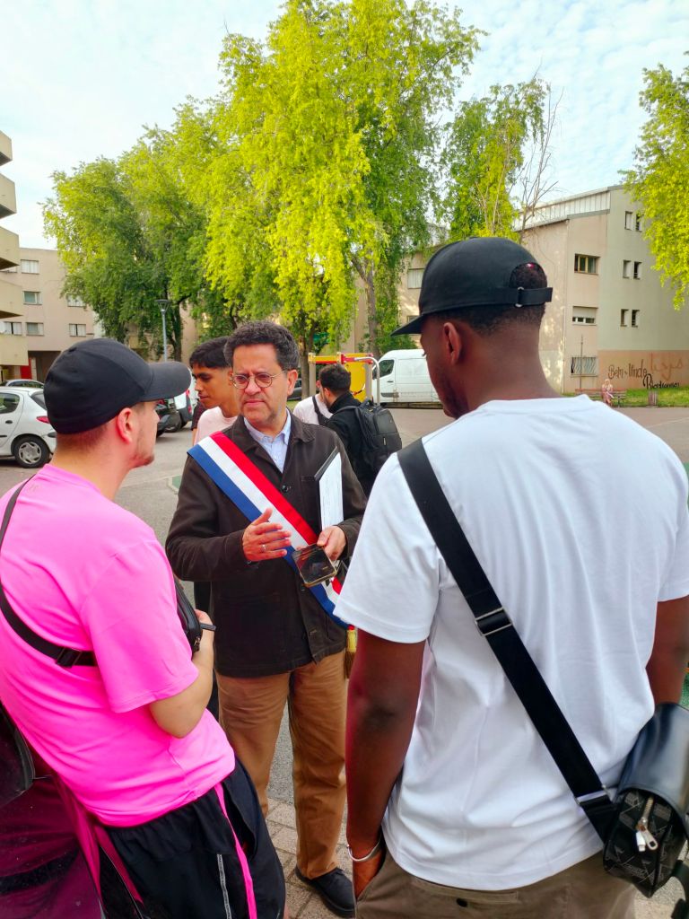 Et comme Gabriel Amard ne se démonte jamais, et qu’il a déjà été Maire d’une ville dans la couronne parisienne, lorsqu’il arrive, naturellement les jeunes ont commencé le dialogue avec lui.
